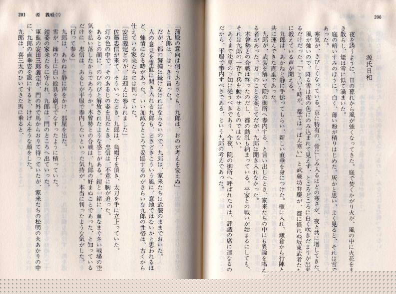 | 4、源九郎義経、武装を解いて院の御所参内へ。これを安田義定が迎える。 | |||